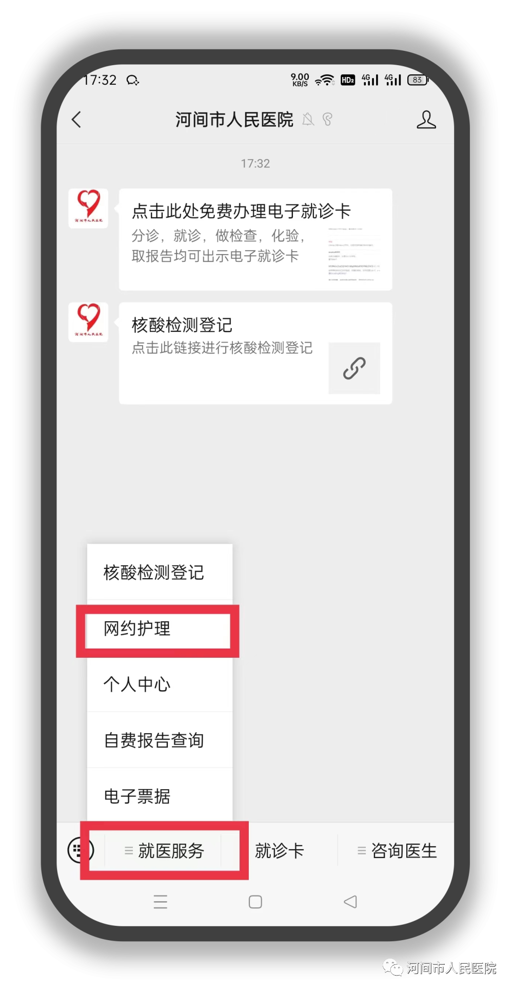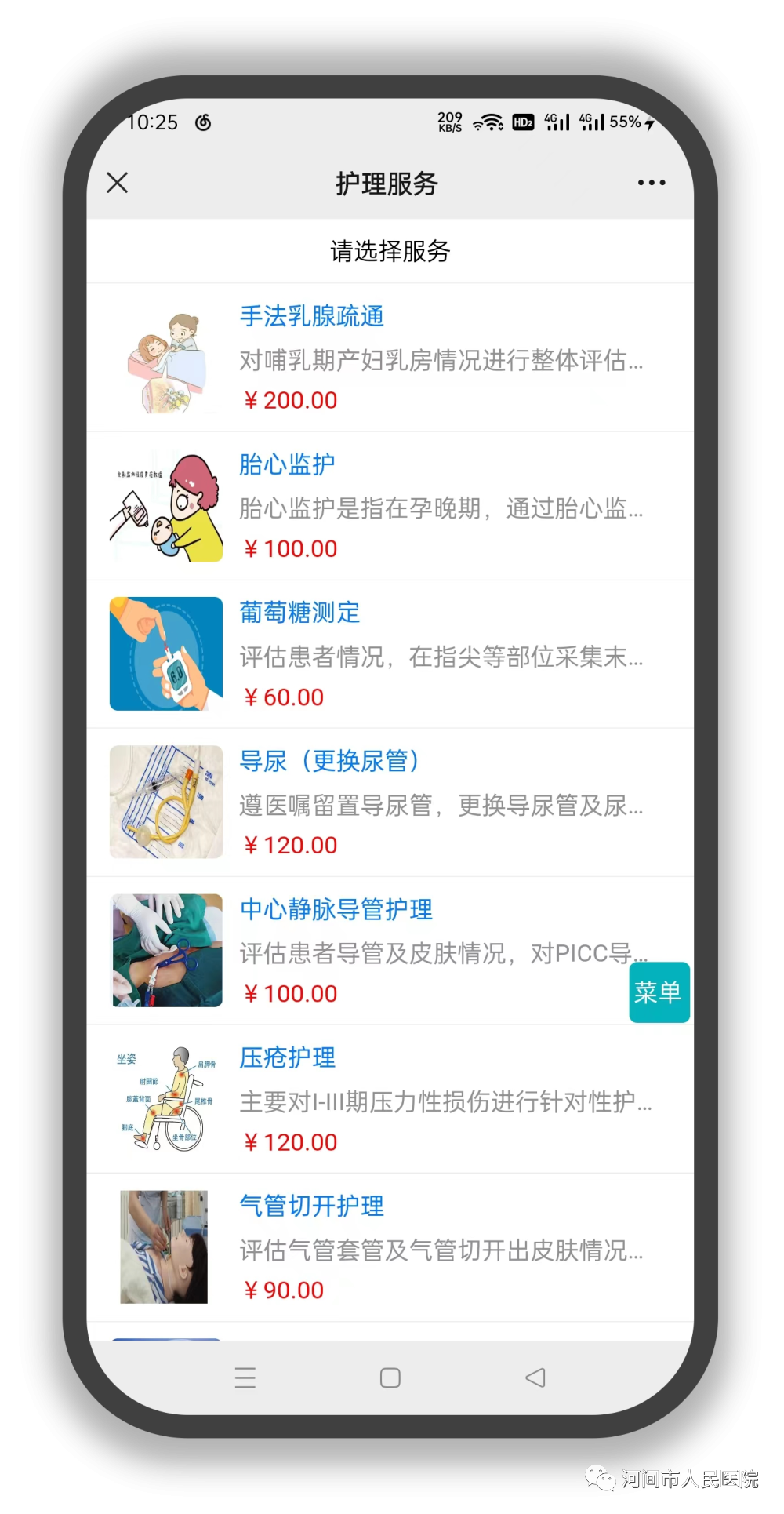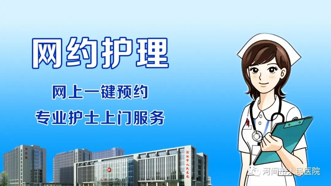 为积极响应国家政策,提高出院患者的后续服务质量,我院借助“互联网+护理服务”平台,在公众号推出线上“网约护理”服务,充分发挥医院护理队伍的专业技术优势,把优质护理服务资源下沉,将护理延伸至家庭,为河间市的老百姓提供更加便捷、高效、满意的护理服务。