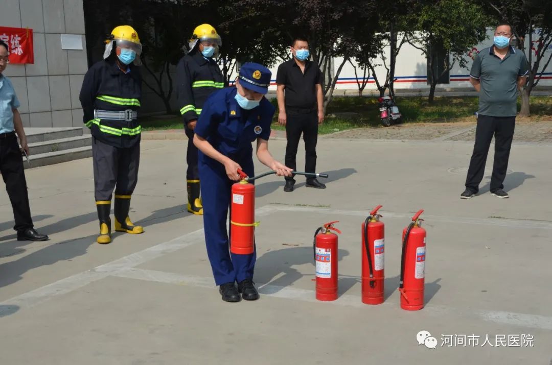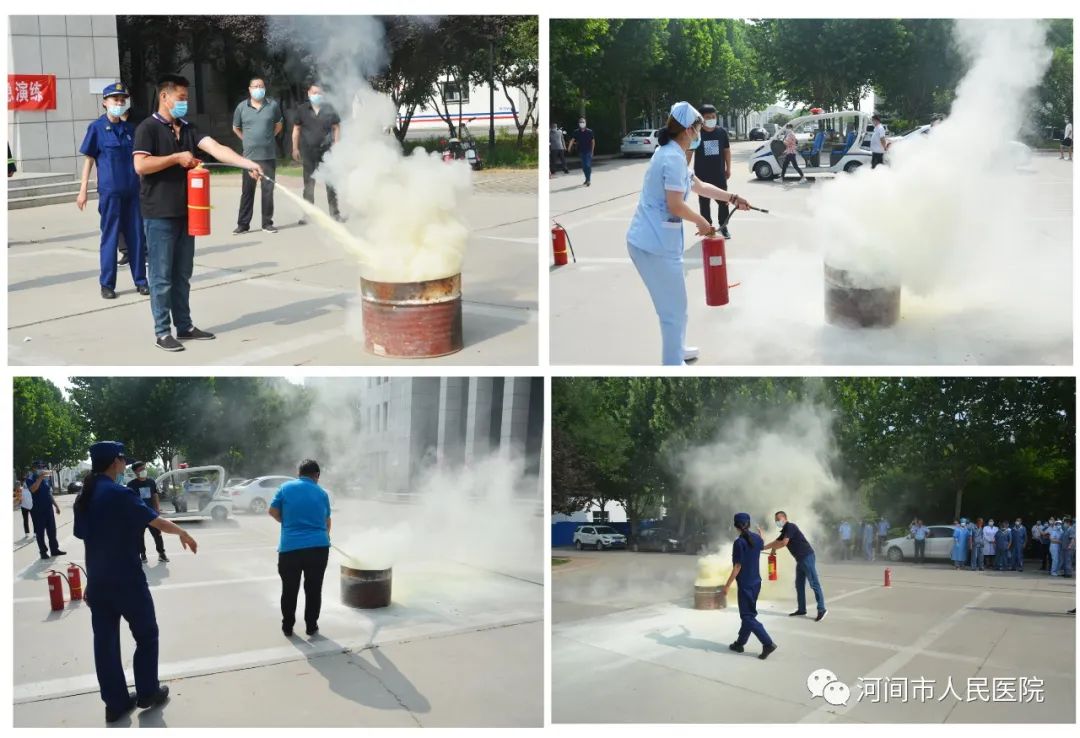 院办室联合保卫科开展消防实操演练活动。消防实操演练活动得到院领导的高度重视和大力支持,副院长杜宝良及各科室主任组织部分人员参加此次活动,本次活动特邀河间市消防救援大队教官现场指导。