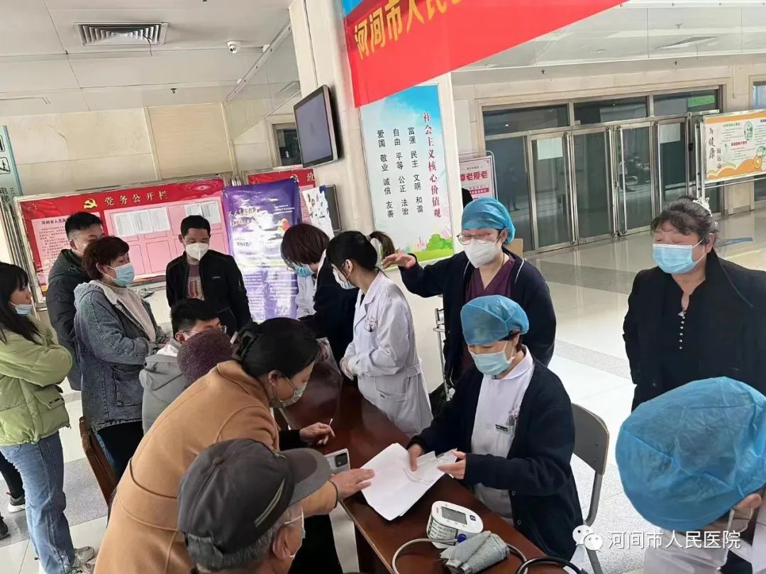 肾内科主任、主任医师康素芝,主治医师荣艳丽、王田田,护士长孙爱云等医务人员为前来咨询的人群答疑解惑,开展免费测量血压、血糖、尿蛋白、尿肌酐等活动。