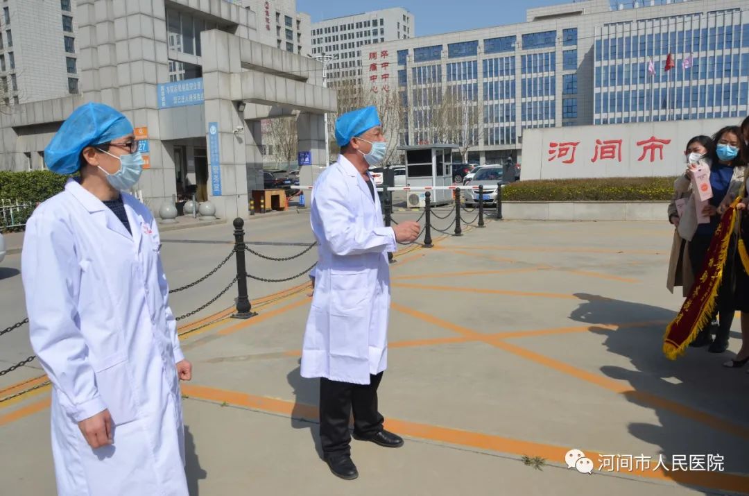 我院副院长张铁庄、护理部主任魏建平为支援队结束隔离观察的医务人员举行了简短又温馨的欢迎仪式。张院长对参加此次支援任务的医务人员圆满完成任务给予高度的肯定,希望大家调整好状态,继续投入到我市疫情防控工作中。